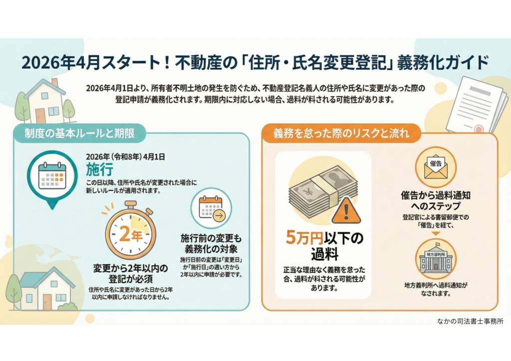 さらに2026年4月から氏名・住所変更登記も義務化。